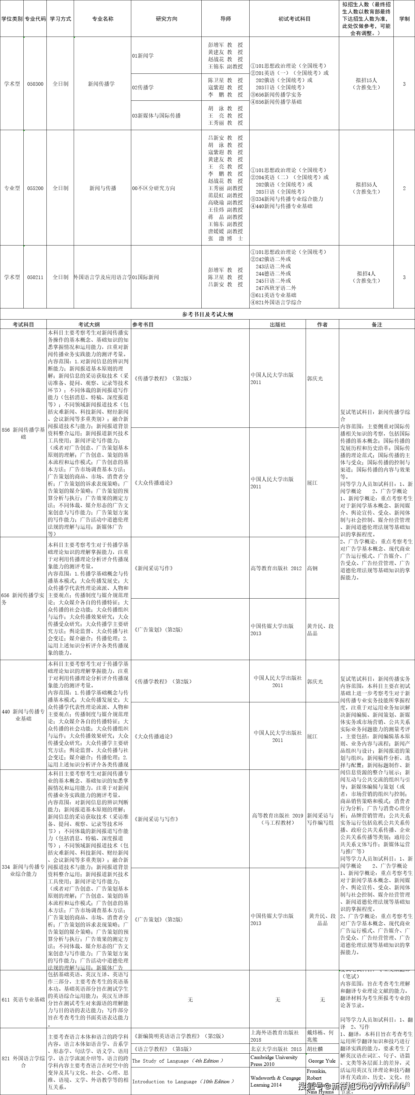 西安外国语大学新闻与传播学院2022年硕士研究生招生专业目录