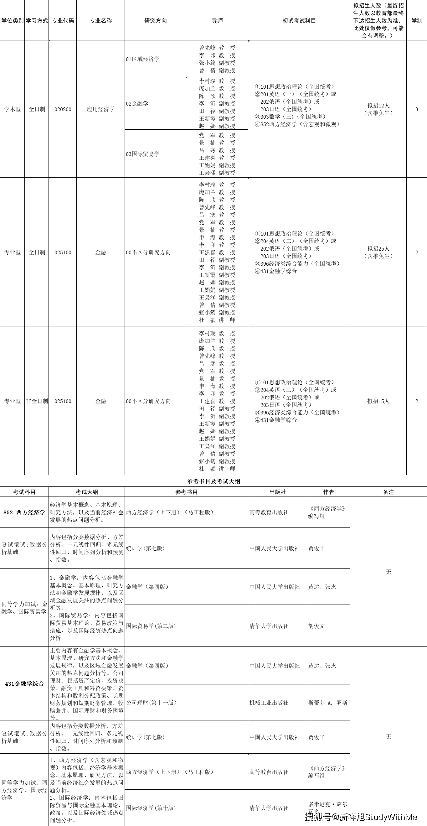 西安外国语大学经济金融学院2022年硕士研究生招生专业目录