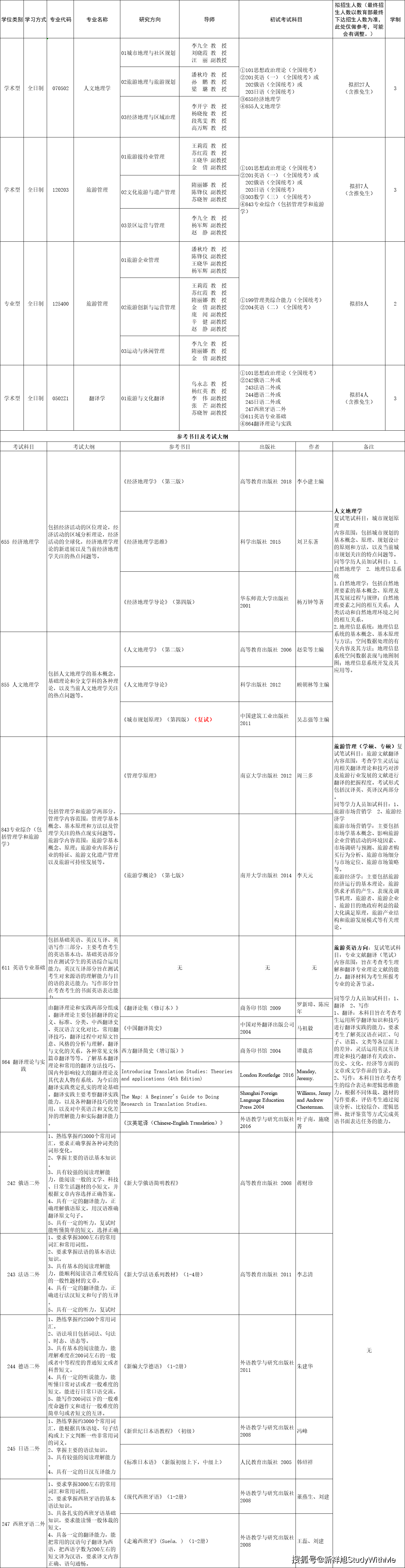 西安外国语大学旅游学院2022年硕士研究生招生专业目录