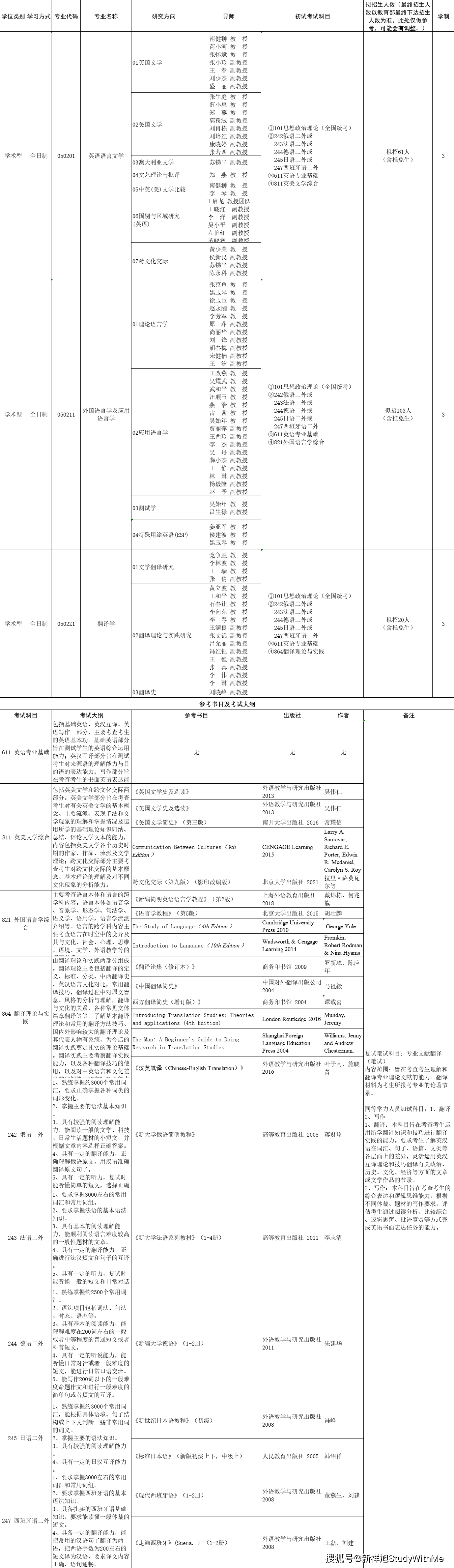 西安外国语大学英文学院2022年硕士研究生招生专业目录