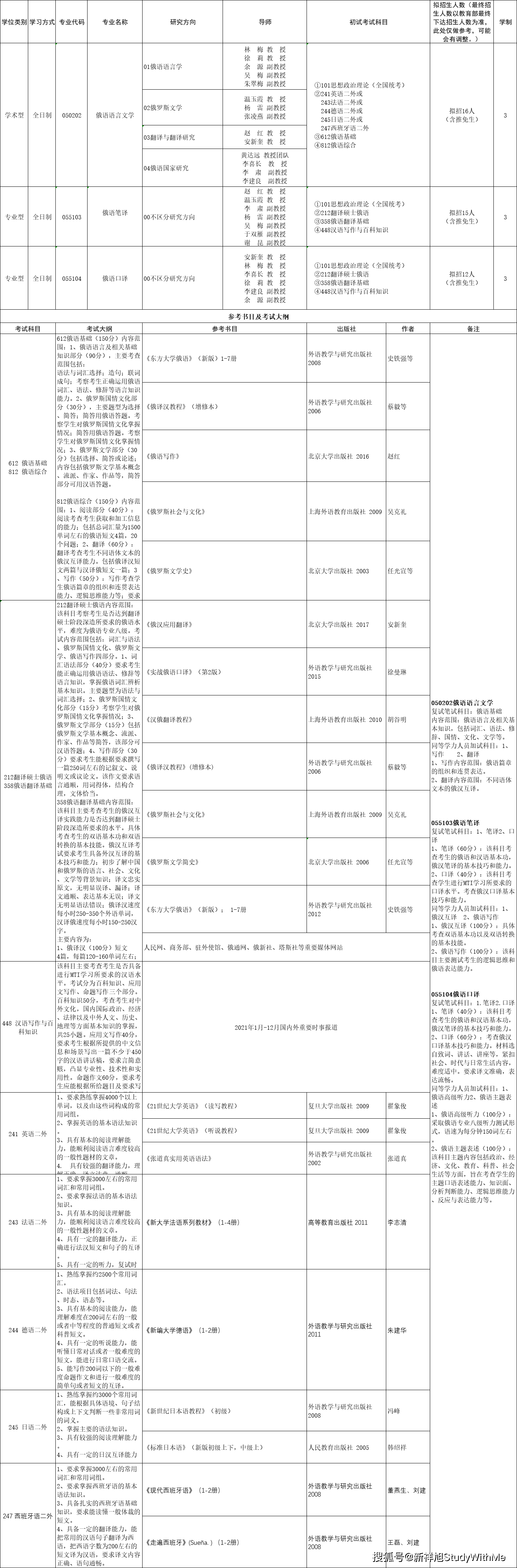 西安外国语大学俄语学院2022年硕士研究生招生专业目录
