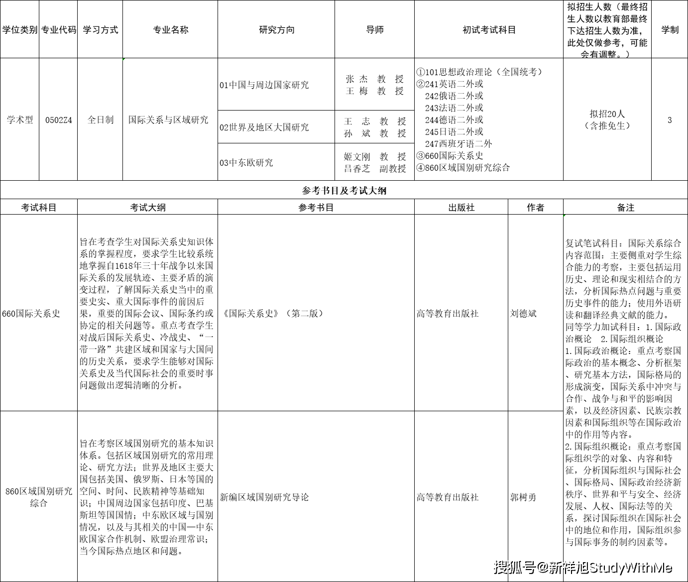 西安外国语大学国际关系学院2022年硕士研究生招生专业目录