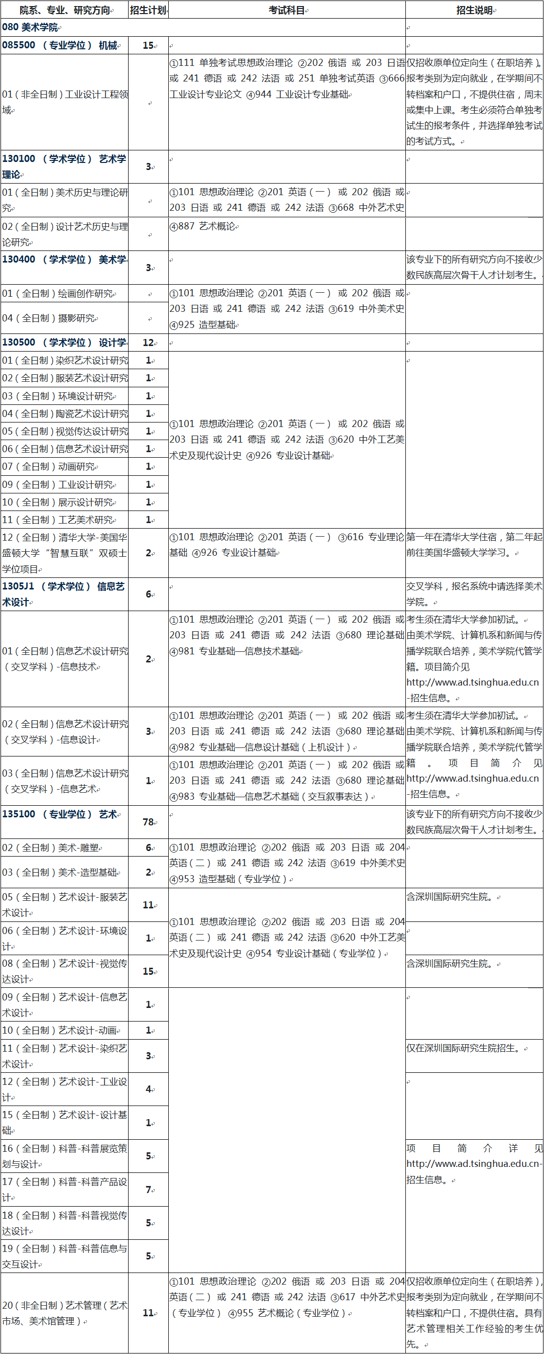 2022年清华大学美术学院硕士研究生招生专业目录、考试科目、招生人数