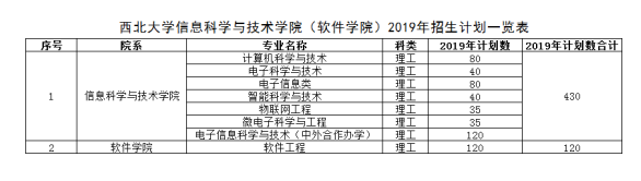 介绍完学校的基本情况,来说说学院以及咱们专业的报考情况吧。信息科学与技术学院成立于2005年5月,是由前计算机科学系和电子科学系为主体整合而成。学院下设计算机科学与技术系、软件工程系、电子科学与技术系、信息与通信工程系、基础教学部、实验教学中心,四系一部一中心。在校博士生、硕士生、本科生3400余人。如果还要详细了解咱们学院的信息,学弟学妹可以搜索【西北大学信息科学与技术学院】官网进行查看。下面是信息学院在2019年的招生计划一览表,可以看到计算机专业(含计算机应用技术、计算机系统结构、信息安全)计划招生80人左右,但除过推免的学生,真正统招学生也就是一半左右。随着20年、21年的录取,可以发现,计算机专业录取人数越来越多,一直在扩招。