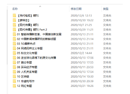 论文期刊:知网《现代传播》《当代电视》,内容涉及艺术类、新闻类、社科类等多个维度,尽量涉猎广泛。