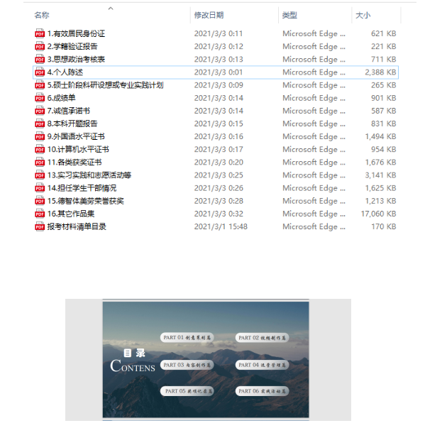 总体来说,整理各类材料的过程十分考验耐心和细心,大家一定要坚持住。如果材料评议的分数理想,是有可能补偿初试成绩的,从而能拉高总体成绩进入复试。因此,千万不能掉以轻心。(额外提醒,不同学院不同专业的评分标准是不一样的,所以有的材料分数相差很大,但实际上没太有可比性,大家千万不要因为这个而丧失信心,一定要对自己做好判断。)