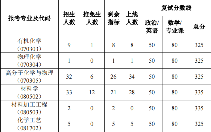 可以看出进两年材料与化工的复试线只有300分,而且进了复试被淘汰的概率并不大,只要你正常发挥,很多都招不满从别的专业调剂过来。