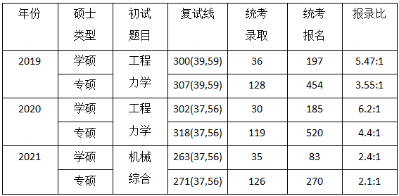 根据上表明显可以看出2021年的报录比低于前两年,这是由于2021年北科机械考研初试的题目进行了改革,由以前的工程力学(理论力学和材料力学)改成了机械综合(机械设计和自动控制原理),第一年改革导致许多考生换了学校,因而2021年的报录比低于前两年。