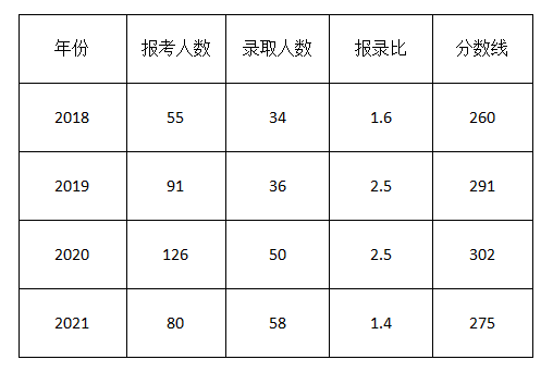 从上表可以看到,该专业近几年录取人数一直在增长,报录比并不是很高且起伏不大,分数线也一直控制在300分以内。相对于其他985、211学校的该专业,是非常值得报考且容易上岸。