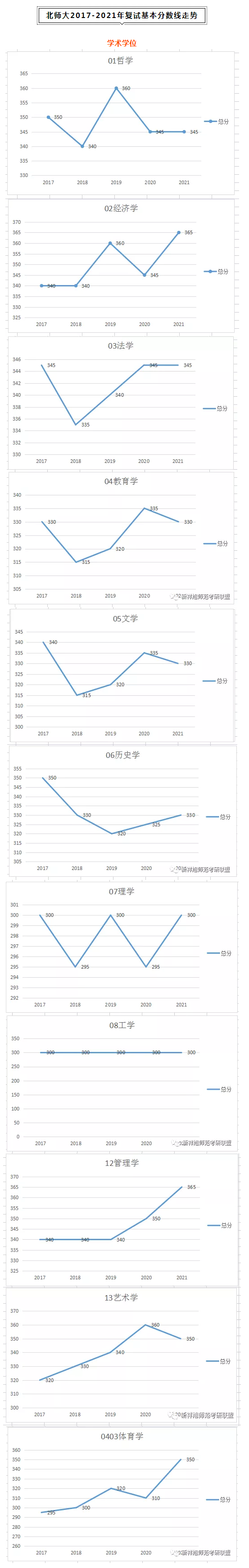 北师大考研辅导班:2017-2021年北京师范大学考研复试分数走势图