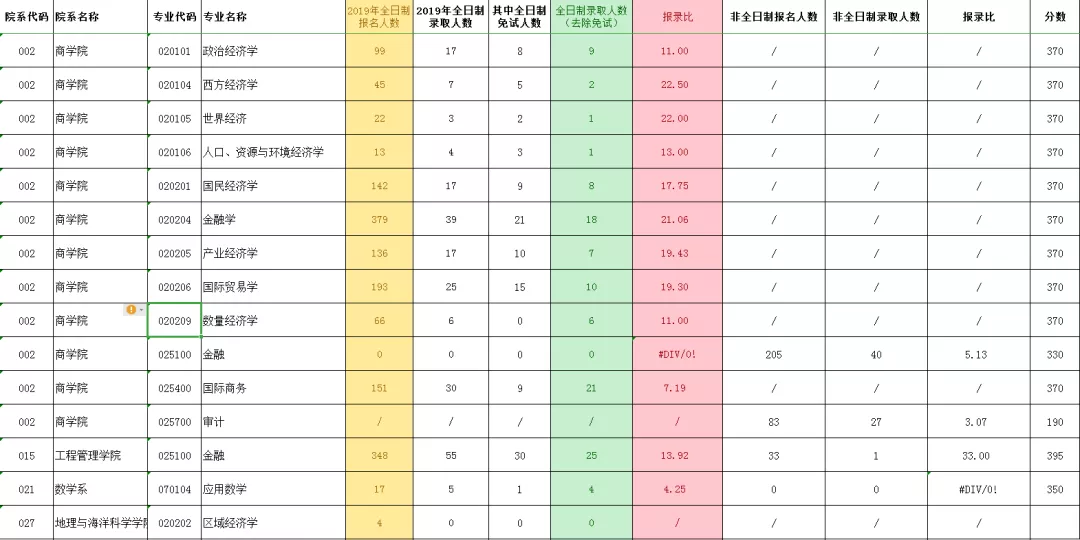 最后推荐数学系的应用统计专业。这个专业报录比是南大经济里报录比唯一一个在10以下的专业,而且复试线也低于平均分。