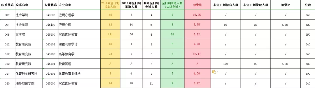 其中汉语国际教育这个专业比较推荐报考,推免占比小,报录比较低,不过收分370,建议有基础实力较好的同学报考。