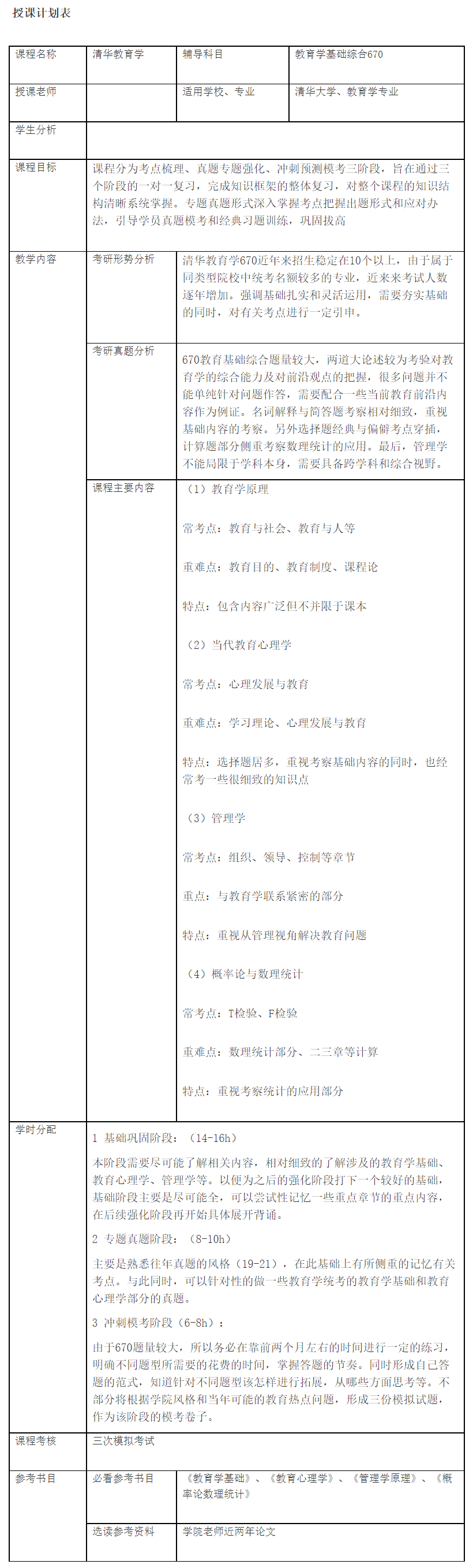 《新祥旭考研 670教育学基础综合 授课计划》