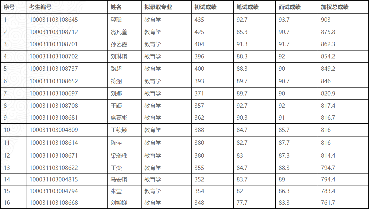 三、2021年清华大学教育学院硕士研究生拟录取名单