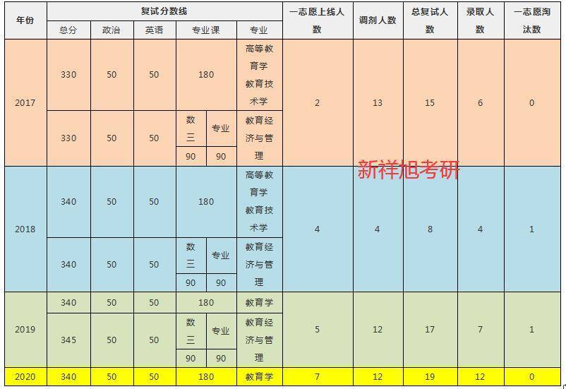从上表可看出,教研院从一开始的分方向招生,逐步发展到了大方向招生,2020年有12个调剂生参加面试,但是有5个没有参与到最终的复试(因为已经被别的学院录取啦)。同时可以看出,一志愿复试被刷的概率较小,2017年和2020年都是一志愿全部通过复试。