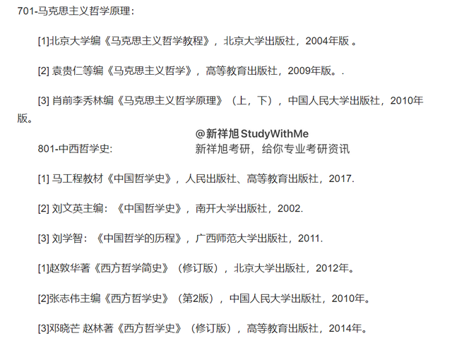 专业课的话是考701-马克思主义哲学原理、原著与801-中西哲学史。先看学院给的考试书目推荐: