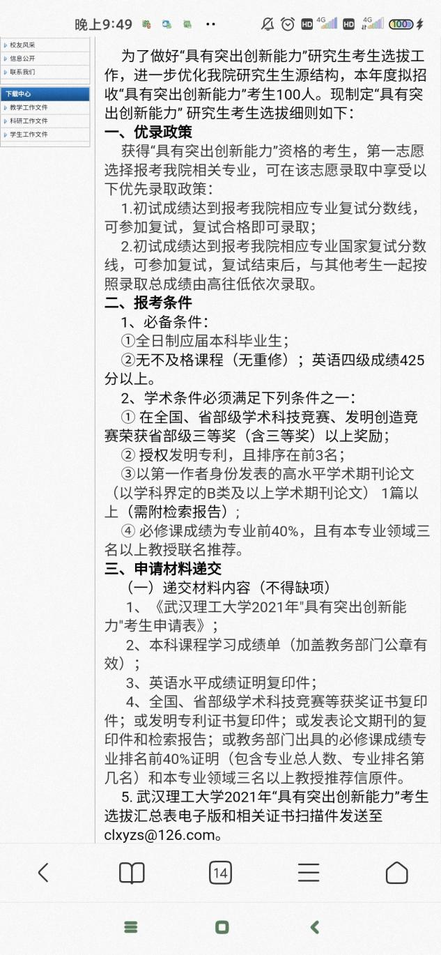 还有对于一些本科一本和比较好二本的学生可以考虑一下申请武理的创新能力(非常有用!)给大家看一下具体文件: