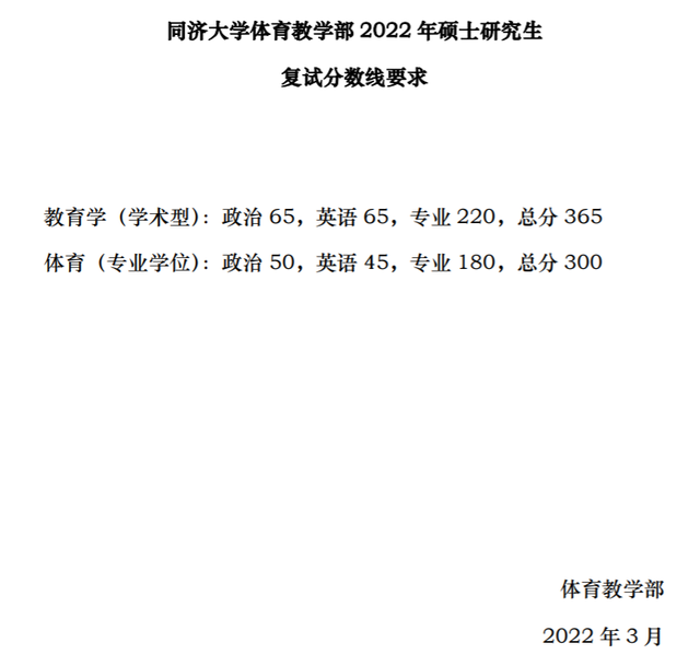 同济大学体育教学部 2022 年硕士研究生