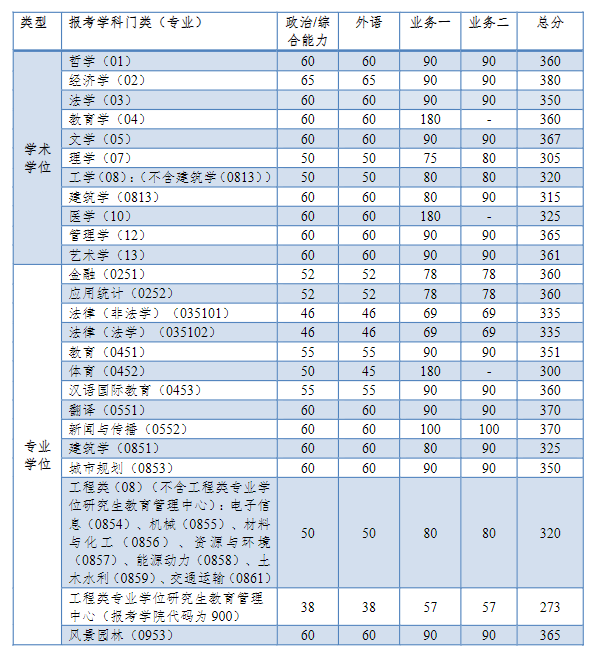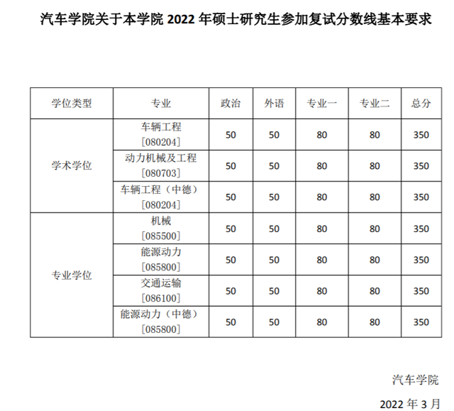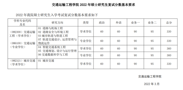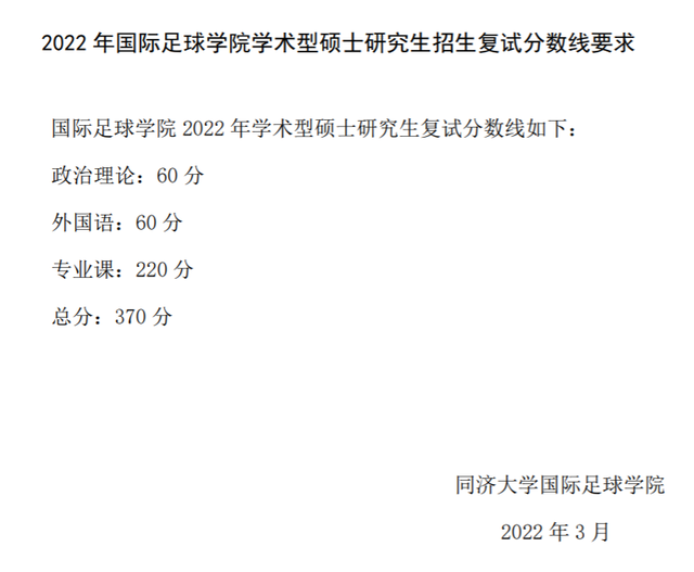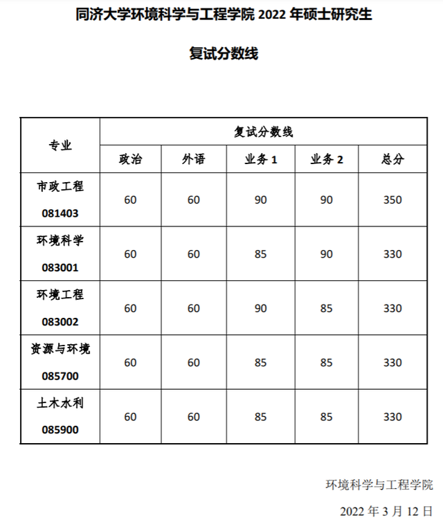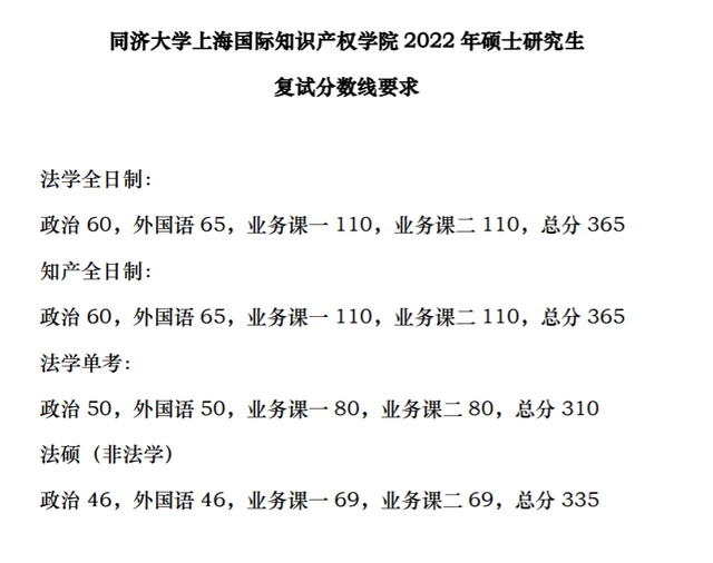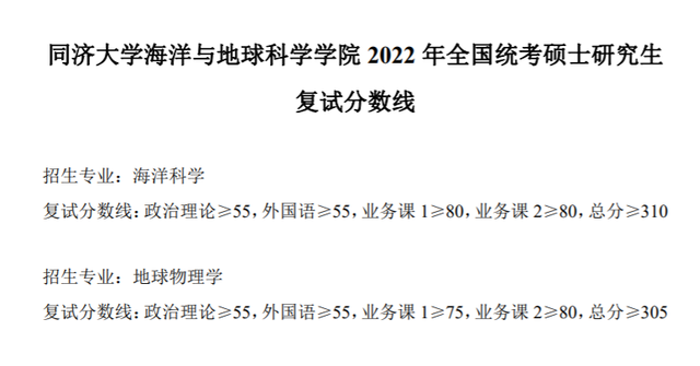同济大学2022年全国硕士研究生招生考试进入复试的初试成绩基本要求