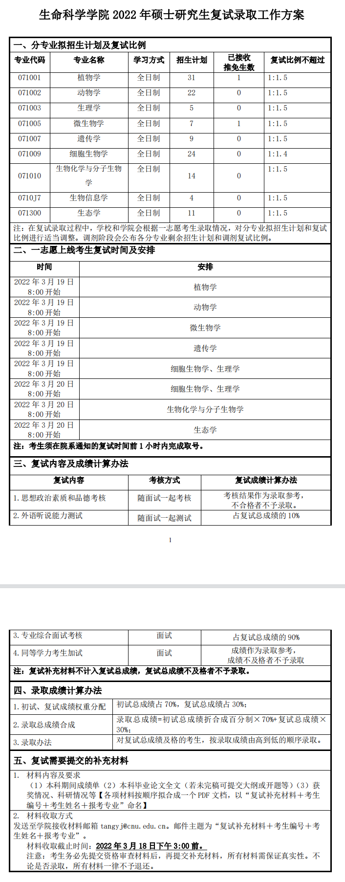 首师大考研辅导班:2022年首都师范大学生命科学学院考研复试录取工作方案!
