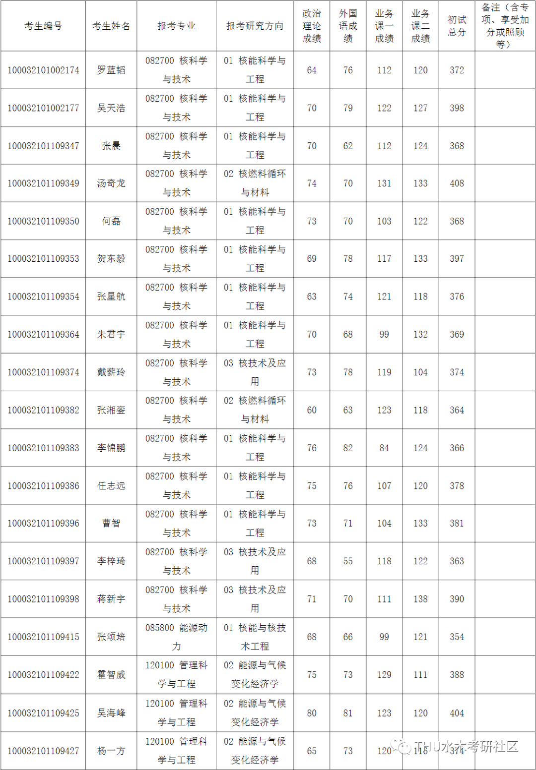 清华大学核能与新能源技术研究院2022年全国硕士研究生招生考试入围复试的名单已确定,现公布如下: