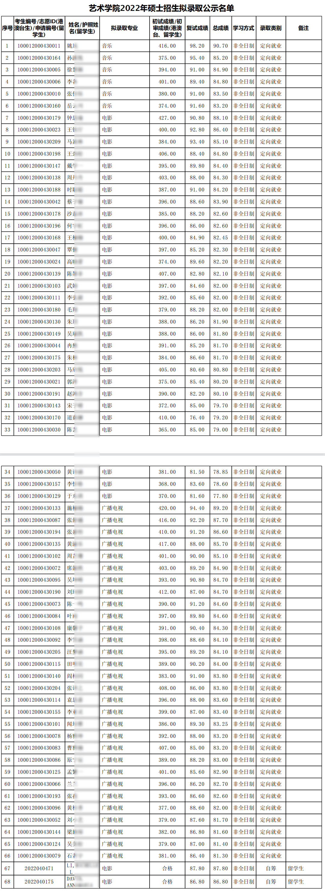 北京大学考研辅导班:2022年北京大学艺术学院硕士研究生录取名单