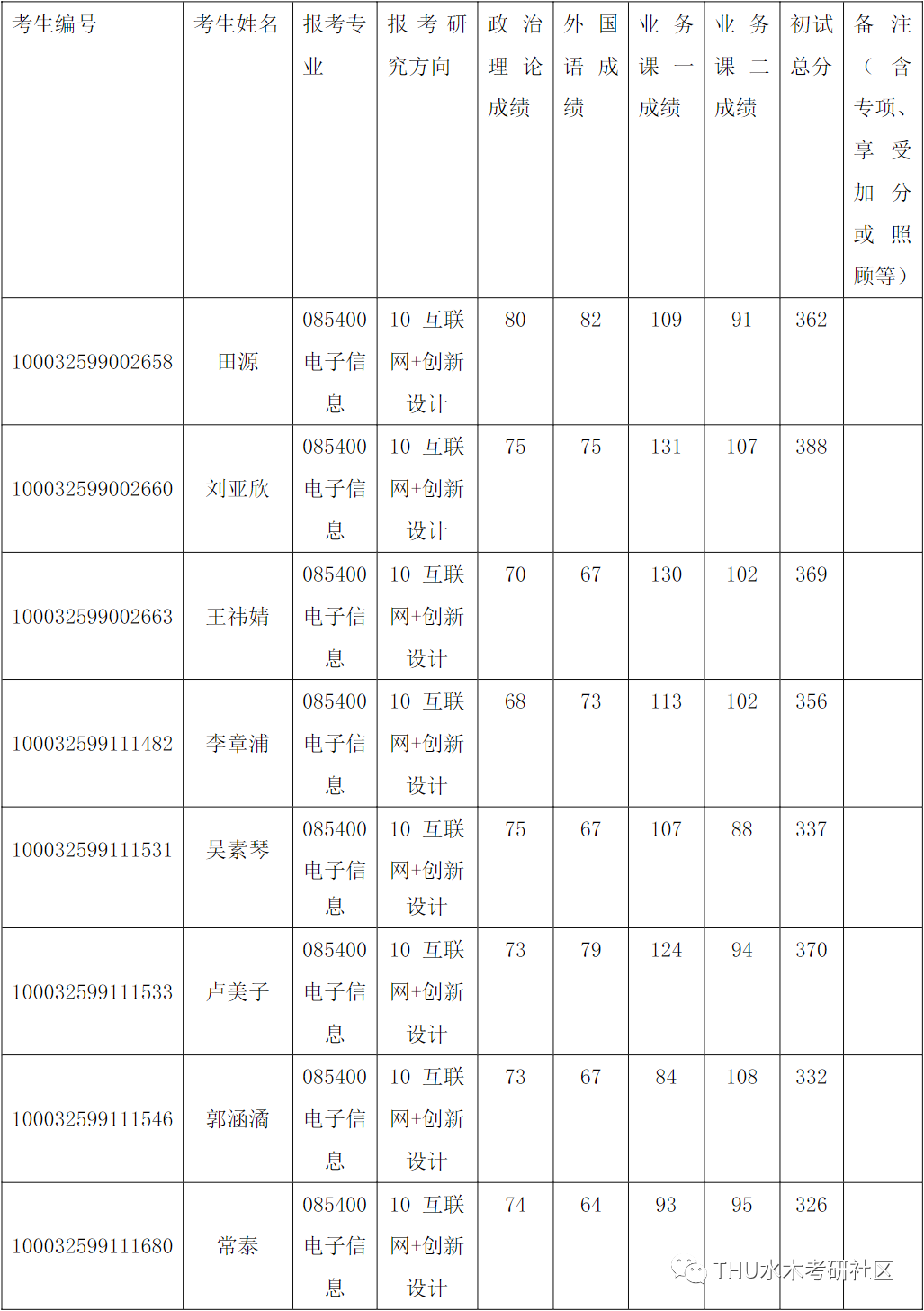 清华大学深圳国际研究生院2022年全国硕士研究生招生考试电子信息(互联网+创新设计)项目调剂入围复试的名单已确定,现公布如下: