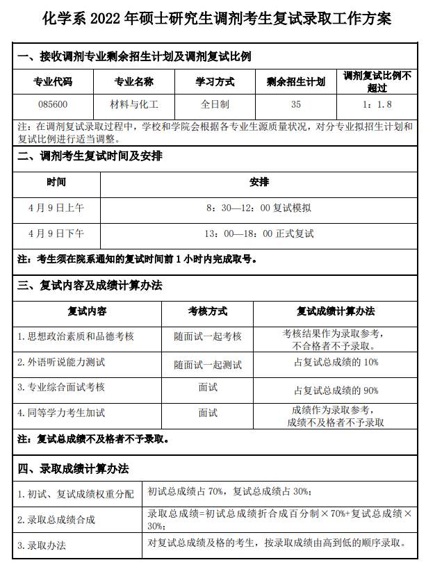 首师大考研辅导班:2022年首都师范大学化学系考研复试调剂录取工作方案!