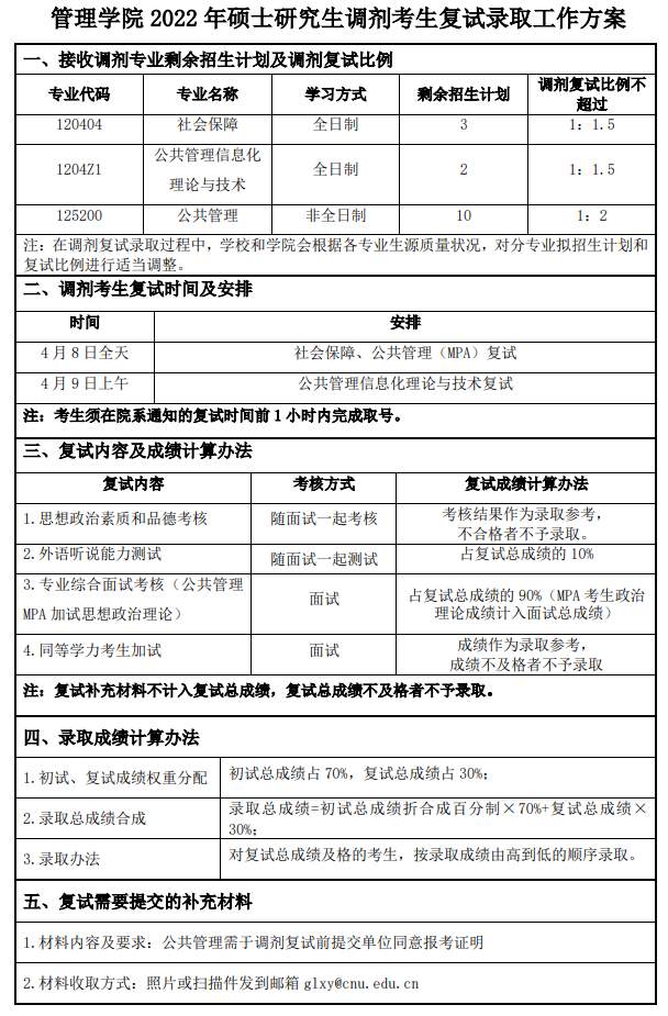 首师大考研辅导班:2022年首都师范大学管理学院考研复试调剂录取工作方案!