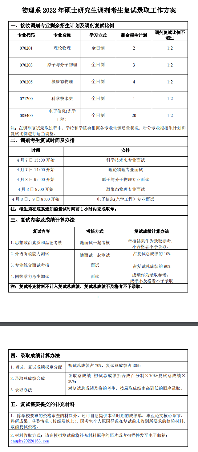 2022年首都师范大学物理系考研复试调剂名额、复试时间等方案细则!