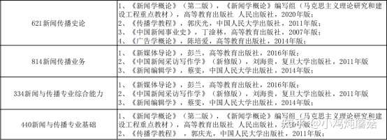 看书的时候我的建议是看一看后面的题目,也不需要一个字一个字的把答案写出来,在脑子里面想一想这个题目怎么做,可以帮助理解内容。参考书中没有刘海龙的《大众传播理论:范式与流派》和李良荣的《新闻学概论》第十版,这两本书虽然从参考书中删去了,但是一定要看,一方面是帮助理解,再就是老师们出题也会涉及这两本书,因为这两本书的内容很重要,之前一直在参考书内,出于一些原因不得不删掉。