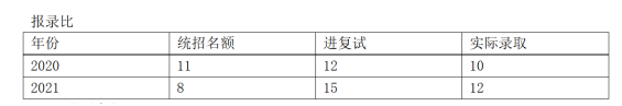 由于报名人数并没有准确的统计,所以不做讨论。与专硕的报名人数相比,学硕的竞争压力相对较小。2020年统招名额11人,进复试名额12人,淘汰2人,实际录取10人。2021年统招名额8人,进复试15人,实际录取12人。从数据上可以看出,复试不会刷掉太多人,也就是说,如果初试分数够高,且复试正常发挥,是没有太大问题的,所以一定要注重初试!注重初试!注重初试!重要的事情说三遍。