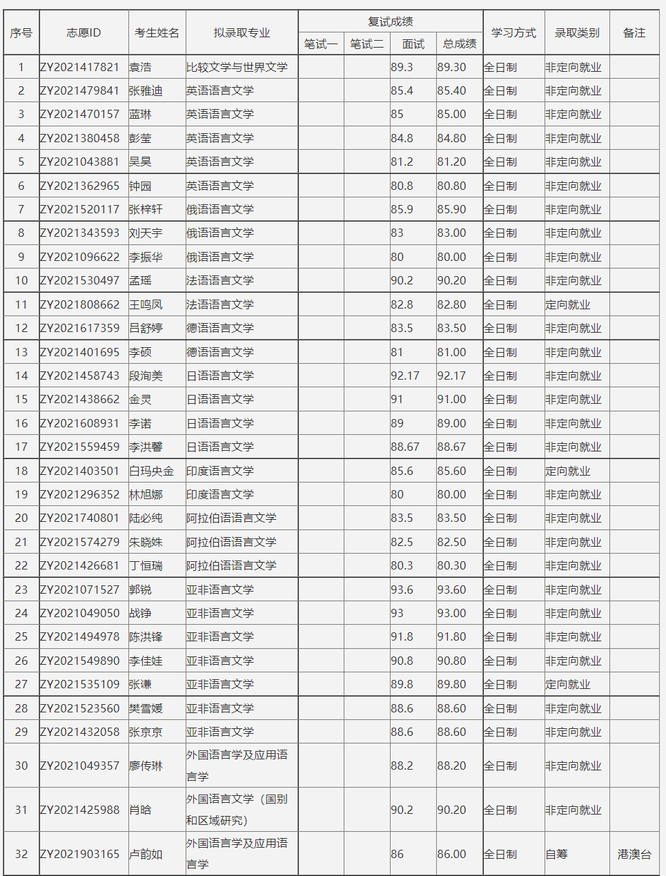 北京大学考博辅导班:北京大学外国语学院2022年博士招生拟录取名单公示