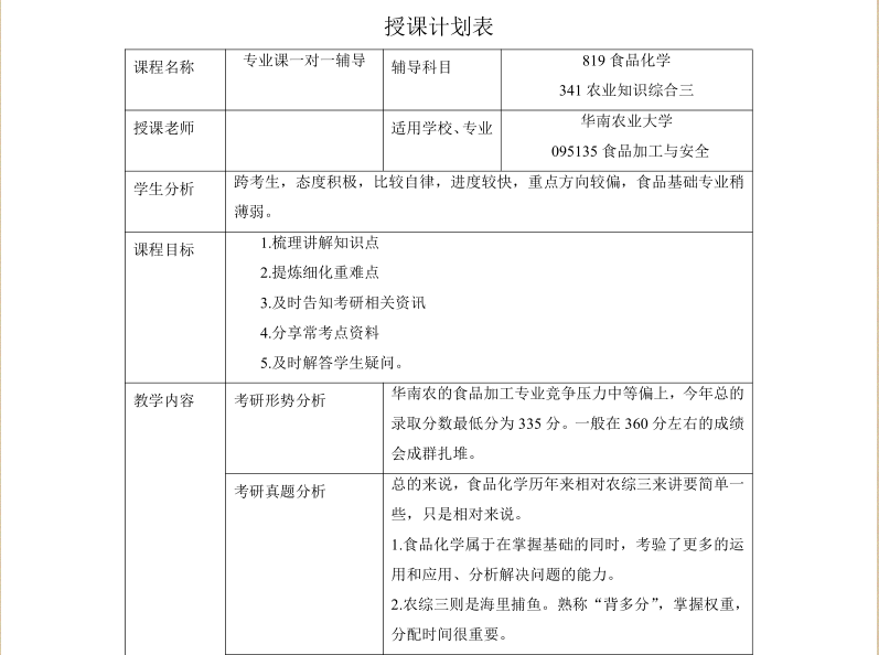 华南农业大学食品加工与安全专业考研复习规划、授课计划、参考书目、真题题型及特点、出题趋势
