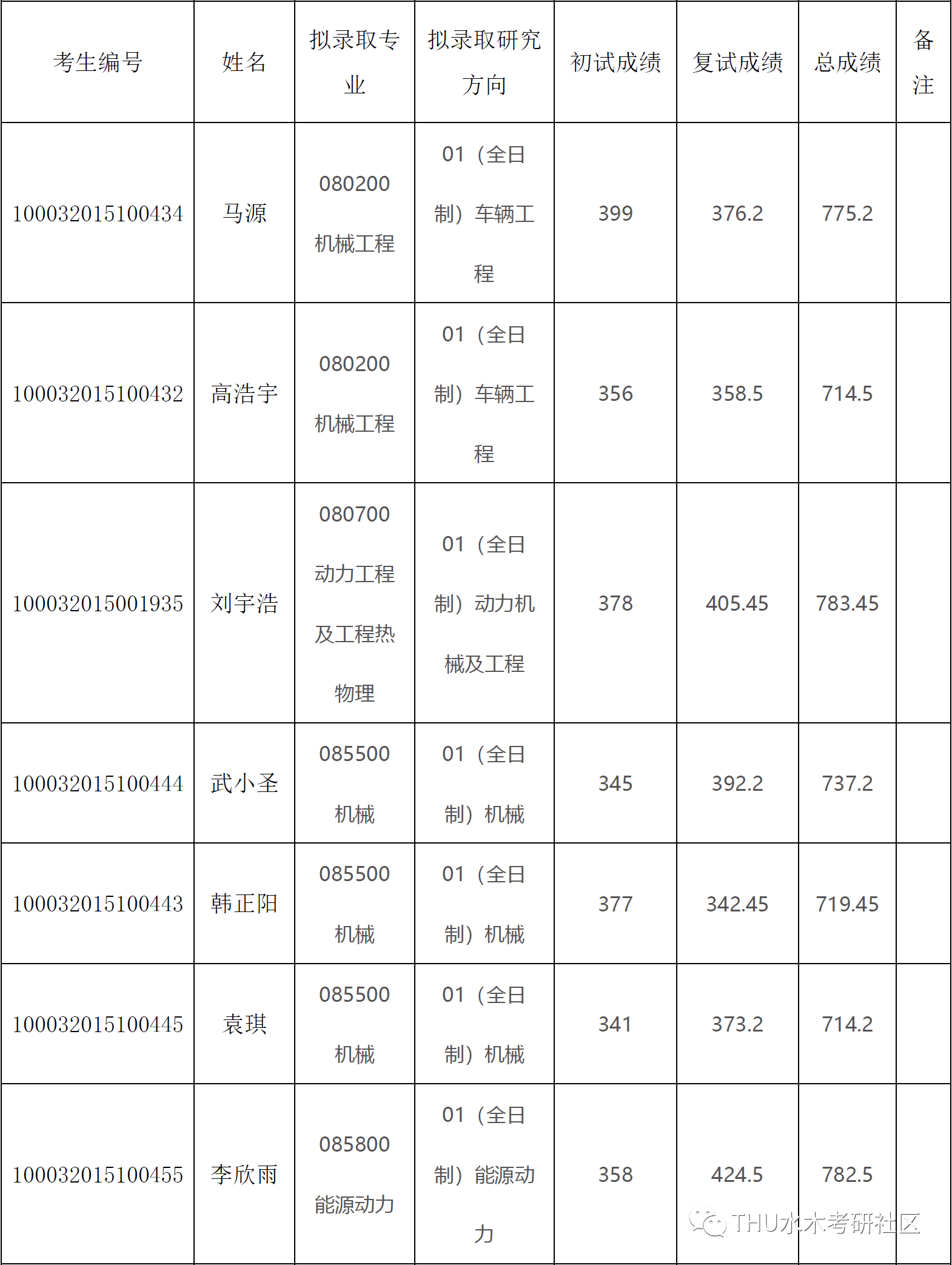 清华大学2022年车辆与运载学院硕士研究生拟录取名单公示 经综合考核和研究生招生工作领导小组讨论,报学校研究生招生工作领导小组批准,清华大学车辆与运载学院2022年硕士研究生拟录取名单已确定,现予以公示。