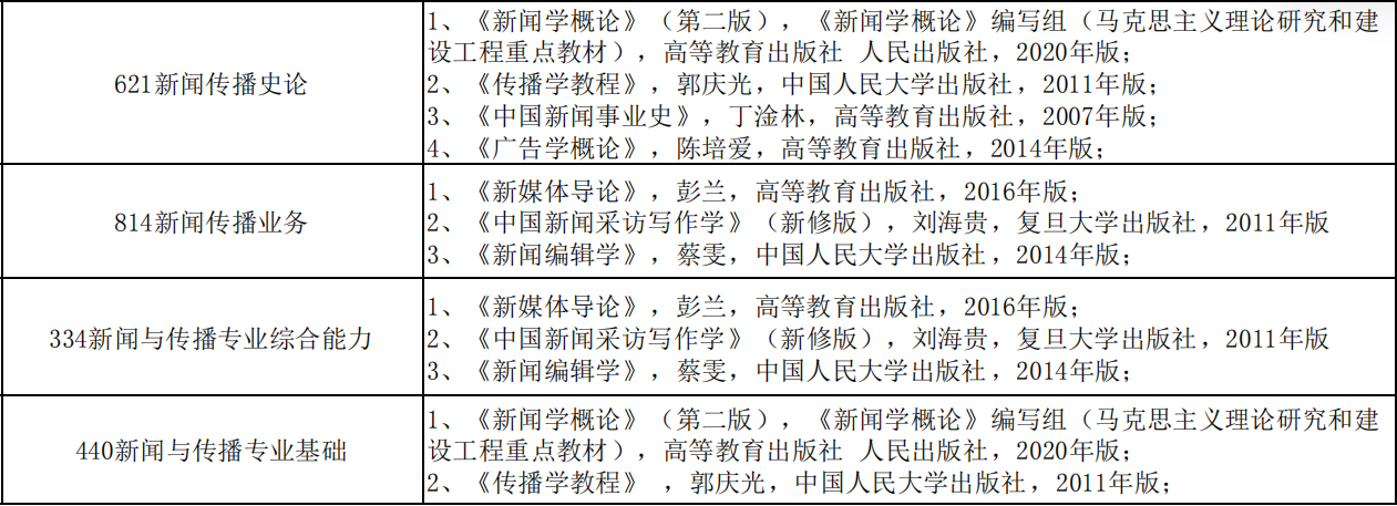 看书的时候我的建议是看一看后面的题目,也不需要一个字一个字的把答案写出来,在脑子里面想一想这个题目怎么做,可以帮助理解内容。参考书中没有刘海龙的《大众传播理论:范式与流派》和李良荣的《新闻学概论》第十版,这两本书虽然从参考书中删去了,但是一定要看,一方面是帮助理解,再就是老师们出题也会涉及这两本书,因为这两本书的内容很重要,之前一直在参考书内,出于一些原因不得不删掉。
