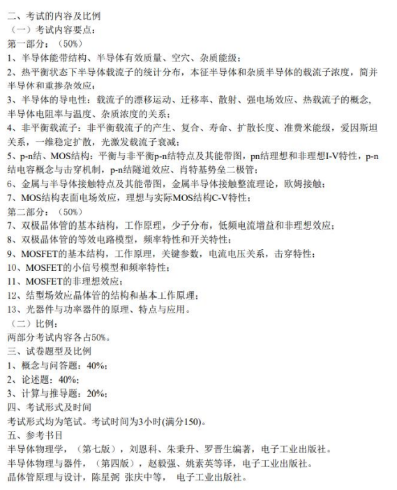 2.器件部分:《半导体物理学》第 6 章——第 8 章+《半导体物理与器件》第 7