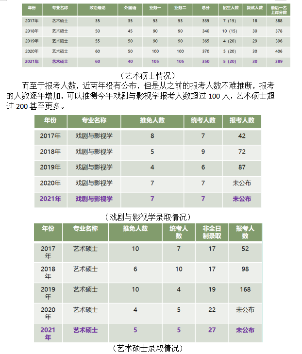 至于招生人数,武汉大学是比较固定的,戏剧与影视学每年大致7个名额,艺术硕士(专硕)则大致5个名额。但是需要注意的是,每年武大会有比较多的非全名额,如果是专硕过了国家线但是很遗憾没有被全日制录取的话,是可以调剂到非全的~
