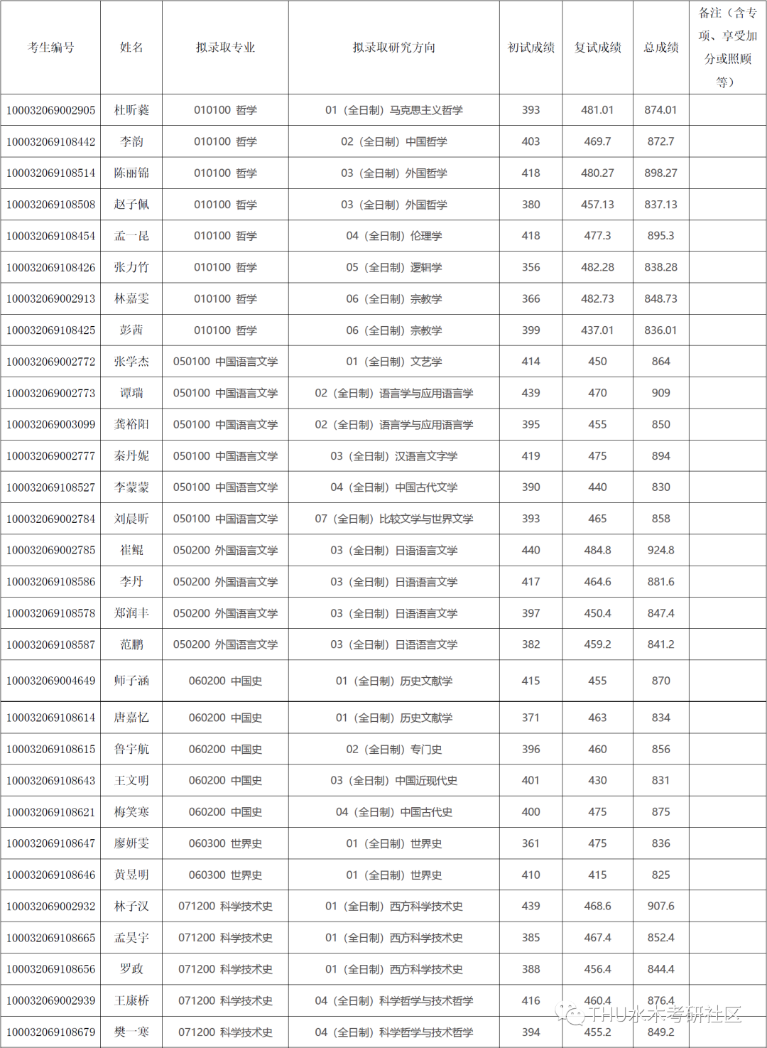 清华大学2022年人文学院硕士研究生拟录取名单公示 经综合考核和研究生招生工作领导小组讨论,报学校研究生招生工作领导小组批准,清华大学人文学院2022年硕士研究生拟录取名单已确定,现予以公示。