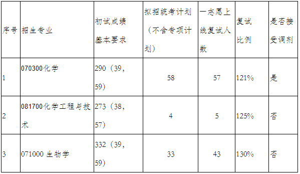第一志愿报考全日制学术学位招生专业考生初试成绩要求