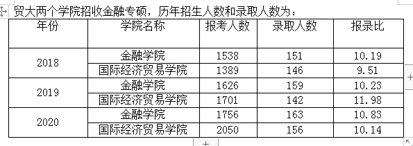 贸大金融专硕近三年分数线: