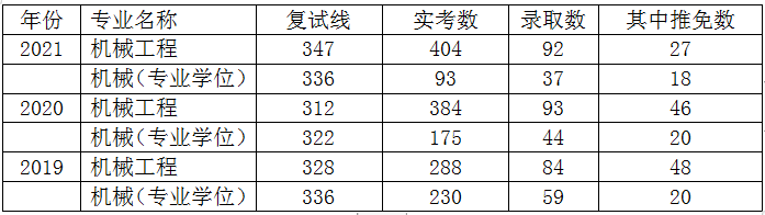 2、整理了近三年学硕和专硕对应的复试线、报考人数还有报录比,可以看出报考东南大学机械工程的难度还是不小的。