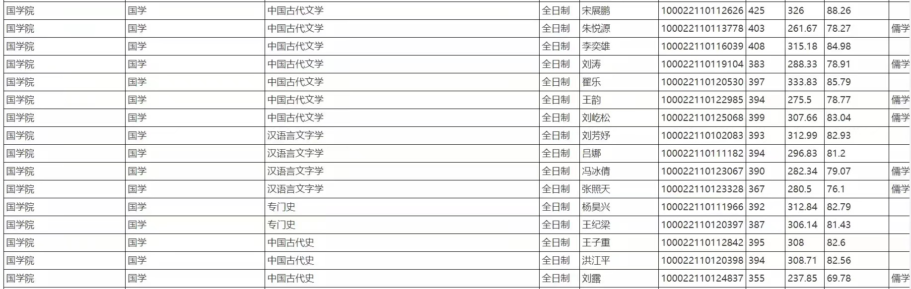 中国人民大学考研辅导班:2022年中国人民大学国学院硕士研究生招生拟录取名单