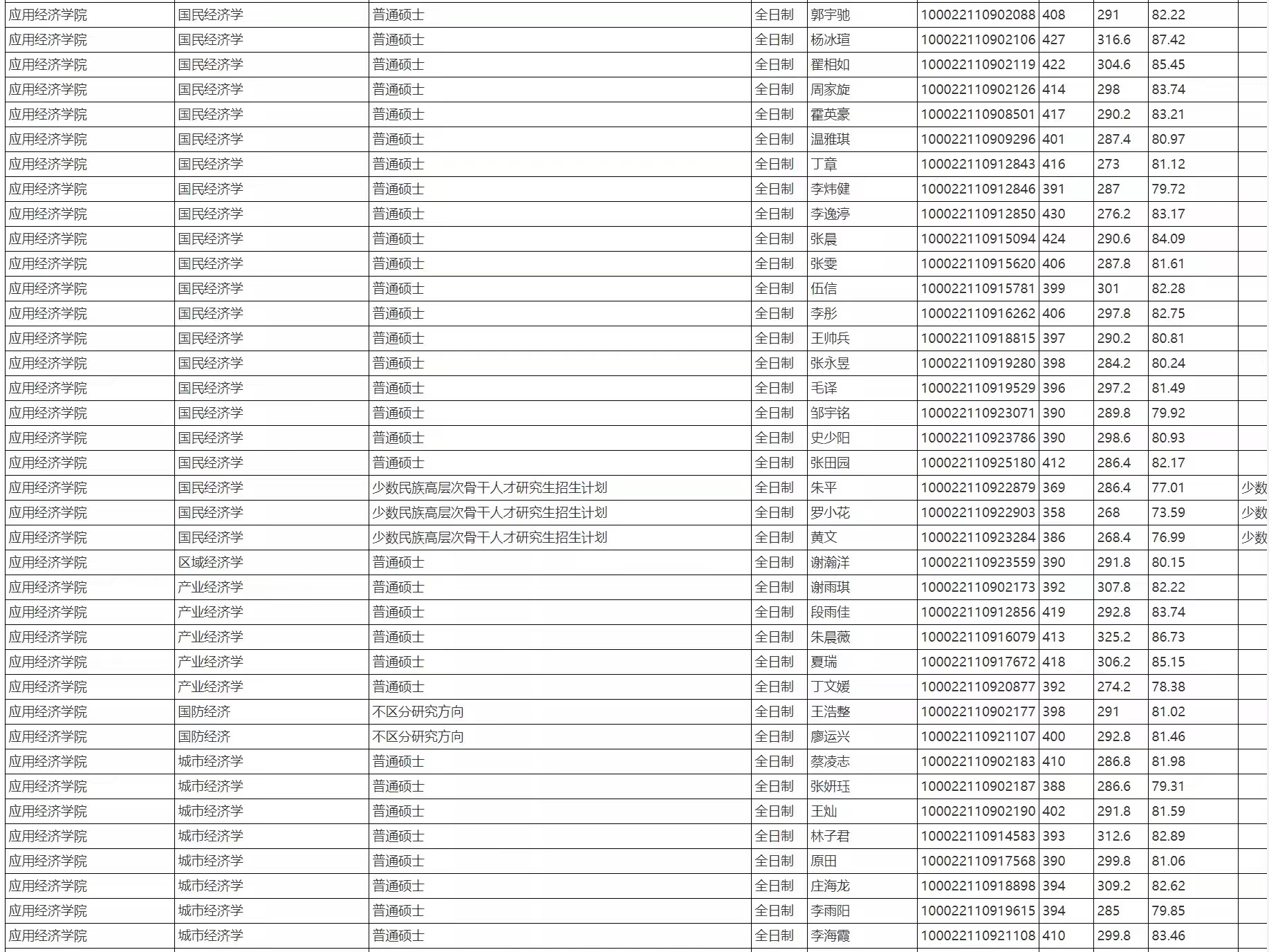 中国人民大学考研辅导班:2022年中国人民大学应用经济学院硕士研究生招生拟录取名单