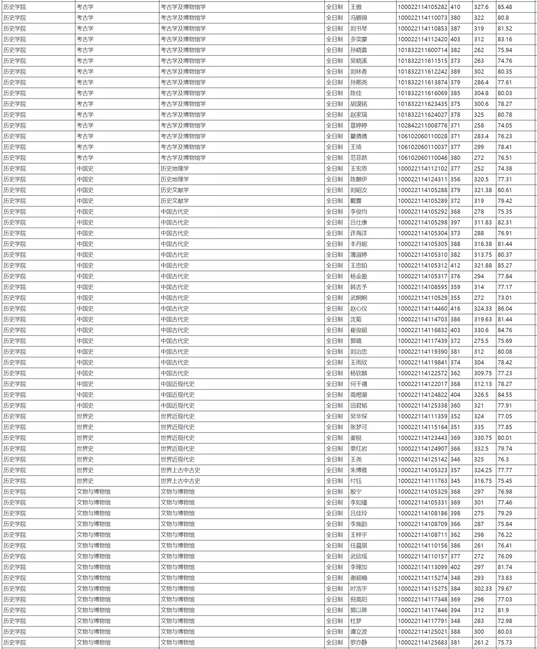 中国人民大学考研辅导班:2022年中国人民大学历史学院硕士研究生招生拟录取名单