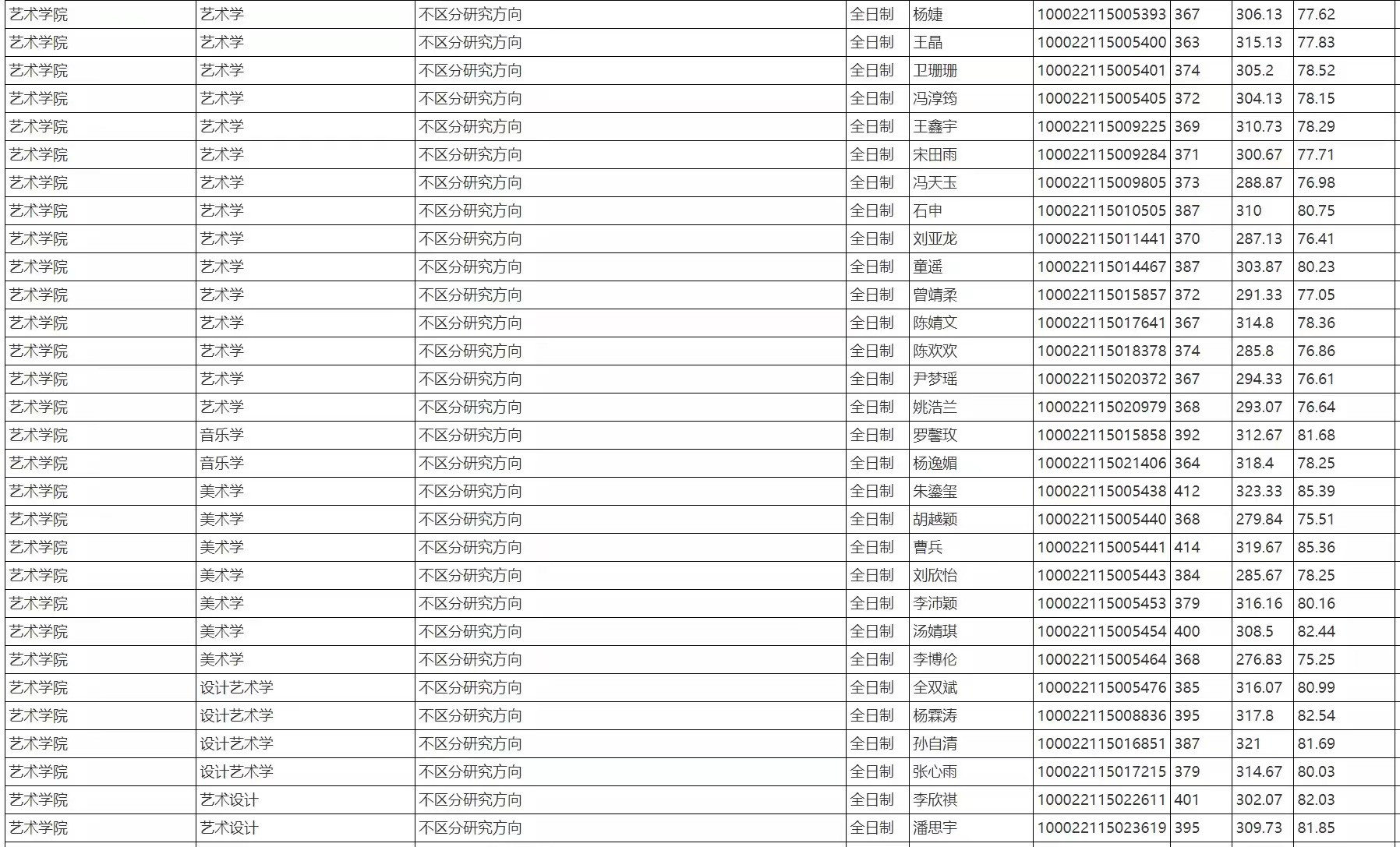 中国人民大学考研辅导班:2022年中国人民大学艺术学院硕士研究生招生拟录取名单