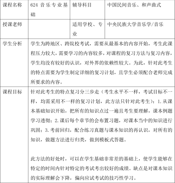 中央民族大学音乐学院音乐专业考研专业课624音乐专业基础参考书目复习规划授课计划真题特点出题趋势等汇总