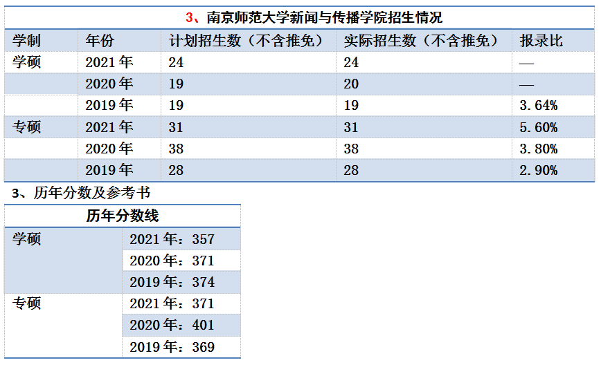 “南京师范大学”属国家211工程、双一流院校,学校拥有仙林、随园、紫金三个校区,随园校区位于南京市鼓楼区,有着“东方最美丽的校园”之美誉。正因为有着优越的地理位置和雄厚的学术能力,因此南京师范大学是考研中比较热门的院校了,新闻传播学和新闻与传播专业的报录比近年来也在持续上升,实际上这是各个院校新闻传播专业比较普遍的一个现象。新闻学硕和专硕的报录比近年来一直在3%—5%左右,在所有院校里并不算是十分“卷”的情况,所以性价比还是很高的。而且近几年南京师范大学新闻传播学的考纲和参考书目基本没有什么变化,招生人数、考试类型和题目很固定,分数线也稳定在国家线附近。