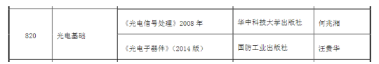 专业课:820专业课算是很简单的,但是不容易拿高分,其中光电信号处理,有一定电路基础的同学学起来会很轻松,而且每年题型基本没多少差别,建议对着考研真题和校内路东明老师授课的笔记以及该课程的本科期末考试题目进行复习。光电子器件考试内容基本都出自书上,如果能背下整本书,拿个高分是很容易的。当然,如果是有半导体物理或者以及固体物理基础的,理解起来会很容易,也方便记忆,这一科目没什么技巧,能够记住书上的相关器件的原理、特征、性能,就可以拿分。只是命题人每年都会出一些新颖的知识点,这些都能在书上找到,但是复习的过程中往往不会注意到。专业课的复习建议在中期就开始进行,先把书上的内容都搞懂,然后再去背。