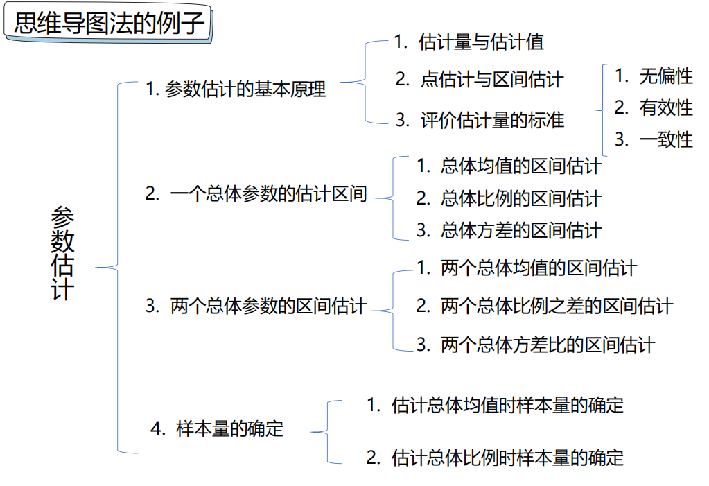 4、思维导图学习法。我想强调一下思维导图这个方法,数学专业课政治英语记单词都可以用,我主要拿他来记忆我的专业课统计学,举个例子,比如说统计学的第一张,是导论,主要讲了三个方面的内容,分别是统计学的应用领域,统计数据的分类,以及统计学的几个基本概念,然后每个下面再继续往下分,这里主要是建议大家把知识性的框架记下来,然后那些定义啥的在进行单独的记忆,形成总分的思想。然后隔一段时间那一张白纸进行默写记忆(专业课的方法部分有详细说明)。